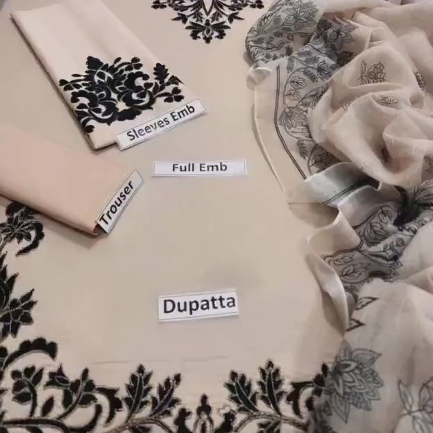 3 Pcs Women's Unstitched Embroidered Suit